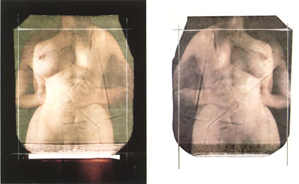 "Corpo a fronte", 1979, Polaroid Polacolor type 809 stenopeica e seta, cm 43x27,5, su carta da disegno cm 50x35.